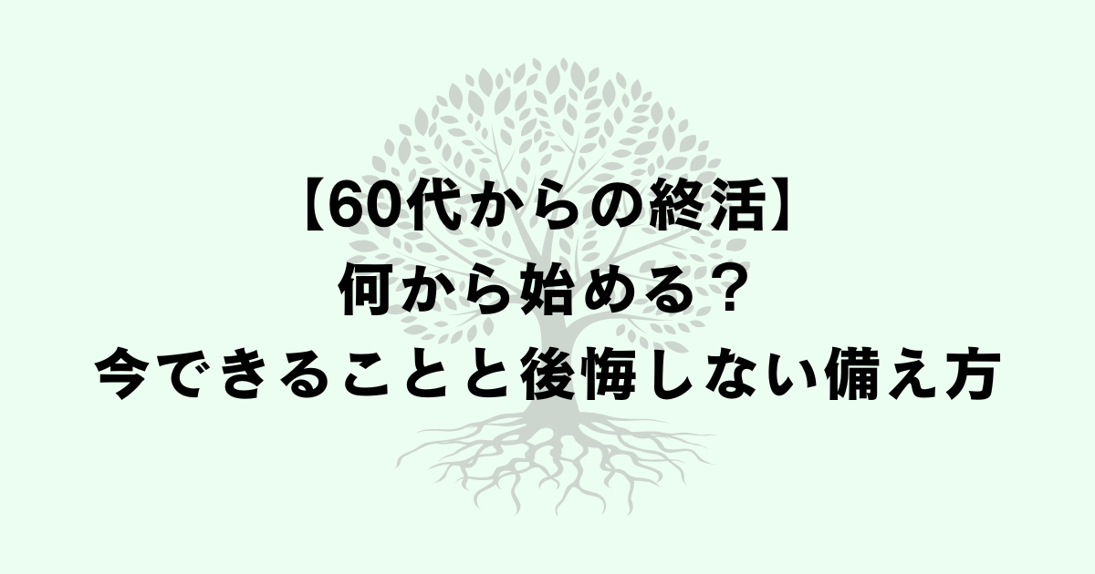 こうした人生の締めくくり方を自分の意志で整えていけることが、60代からの終活の大きな価値です。