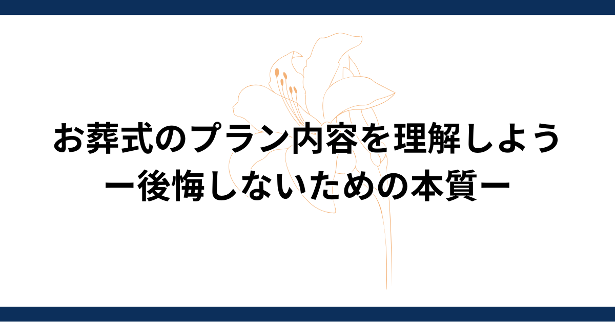 お葬式のプラン内容を理解しようー住職の立場から伝えたい、後悔しないための本質